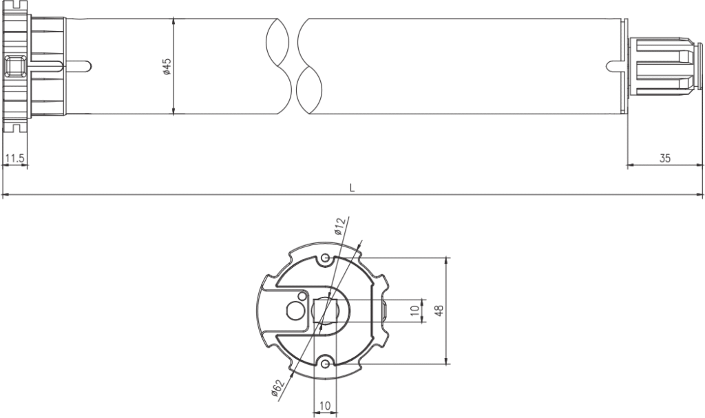 Due to the torque stop function, this motor is ideal for all external straight drop systems. This protective feature can be used to stop on stoppers at the top limit in side channel systems, and can also be used to tension the fabric when the awning is down. A top limit is set normally and the torque stop function can be used in conjunction. Suitable for use with RS001 and RS002, Sun/Wind sensors.
